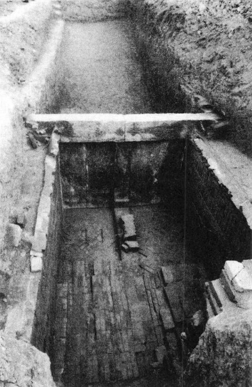 图4-45 南阳县辛店乡熊营汉代画像石墓发掘现场图