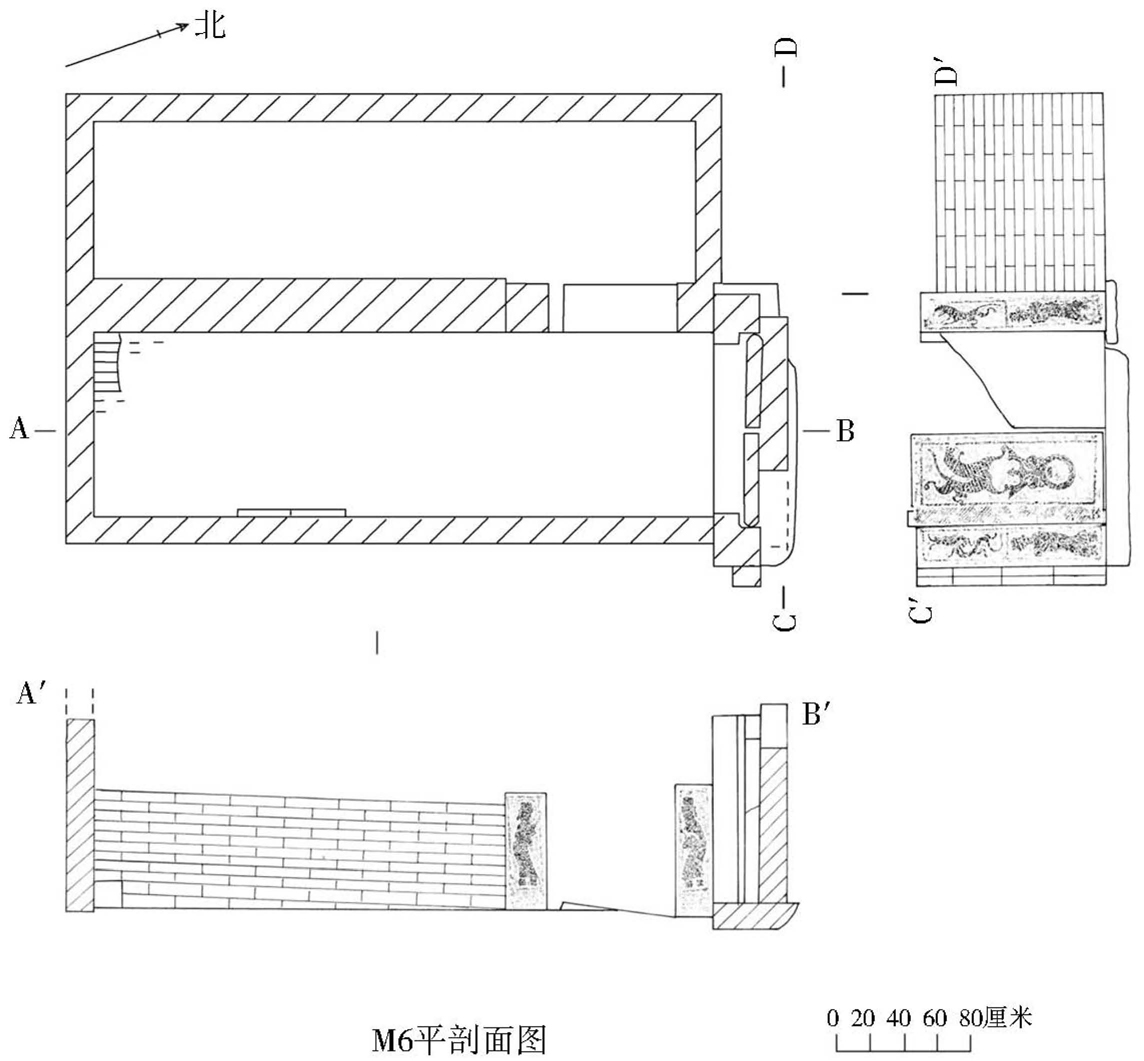 图4-53 南阳市兵工新城汉画像石墓M6平、剖面图