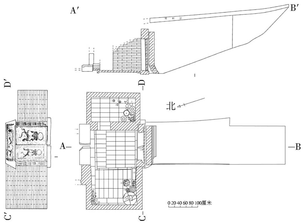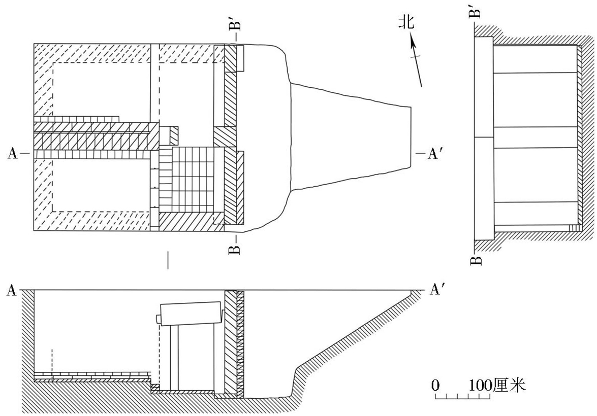 图4-9 唐河罐山汉代画像石M3墓平剖面图