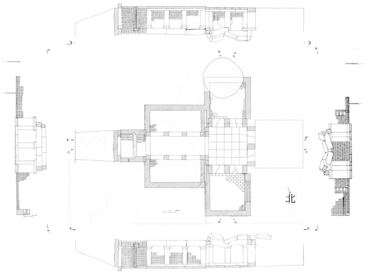 图4-50 河南唐河井楼汉代画像石墓平剖面图