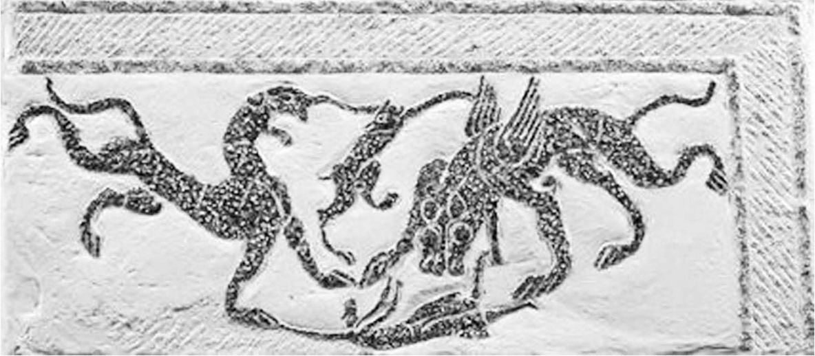 图4-33 唐河电厂汉代画像石二龙穿璧