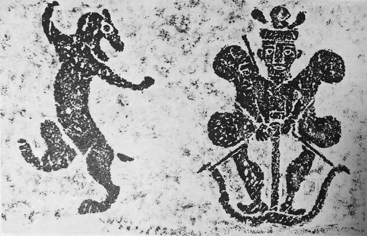 图4-32 唐河郁平大尹冯孺久汉代画像石墓蹶张、熊