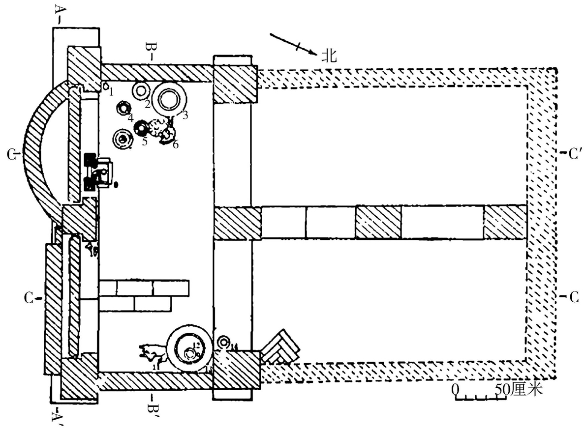 图4-12 唐河罐山汉代画像石M6平剖面图