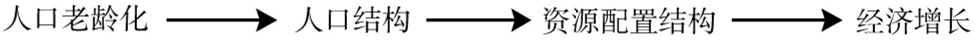 本书的基本观点是:人口老龄化的本质效应是显著改变人口结构,人口结构的变化对应资源配置关系的变化,而资源配置关系的改变必然影响经济增长乃至影响经济运行的各个方面。如上述人口老龄化影响经济增长的途径,实际上也会导致原有资源配置关系发生深刻变化而影响经济增长的。而储蓄、投资和消费以及人口红利等,本质上都是人口老龄化改变资源配置关系进而影响经济增长的具体环节。因此,人口老龄化影响经济增长的基本逻辑,如图6-7所示: