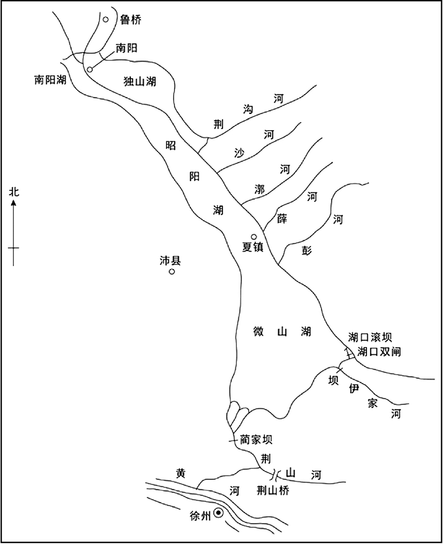 图2—2 乾隆间南阳、独山、昭阳、微山四湖示意图