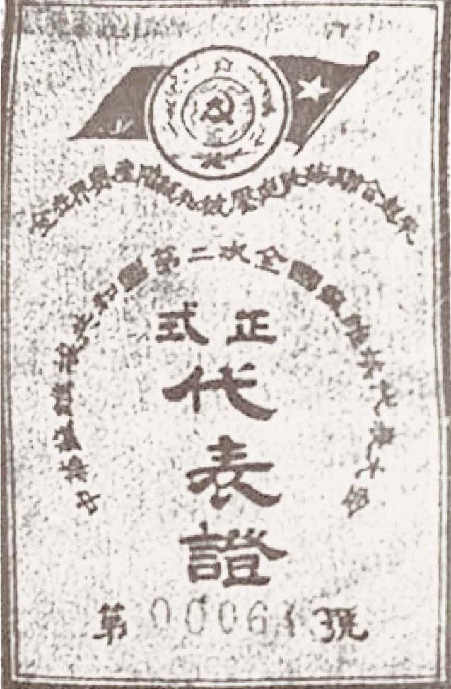 中华苏维埃第二次全国代表大会正式代表证封面(1934年1月)