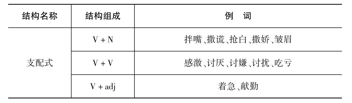 其结构分别有“V+N”“V+V”和“V+adj”的形式,举例见表3-1。
