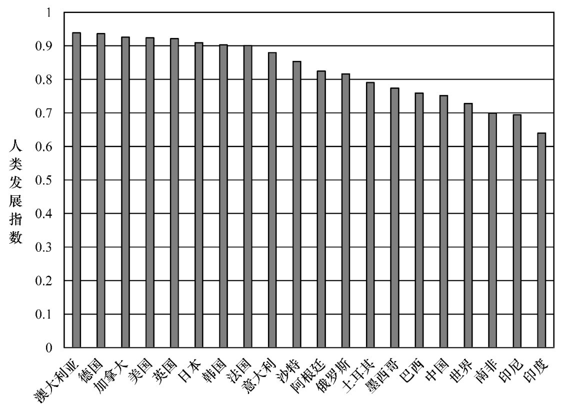 图2-2 世界主要经济体人类发展指数(2017年)