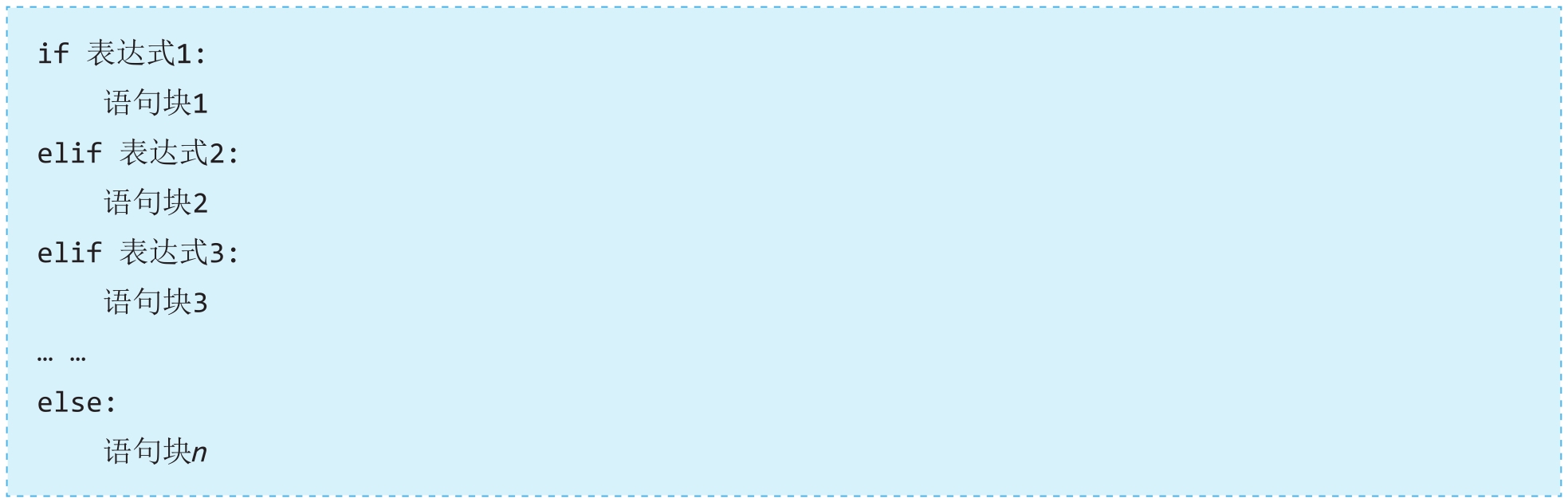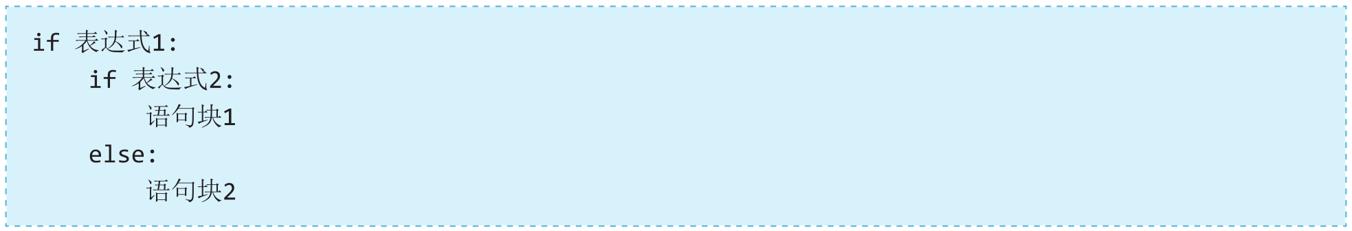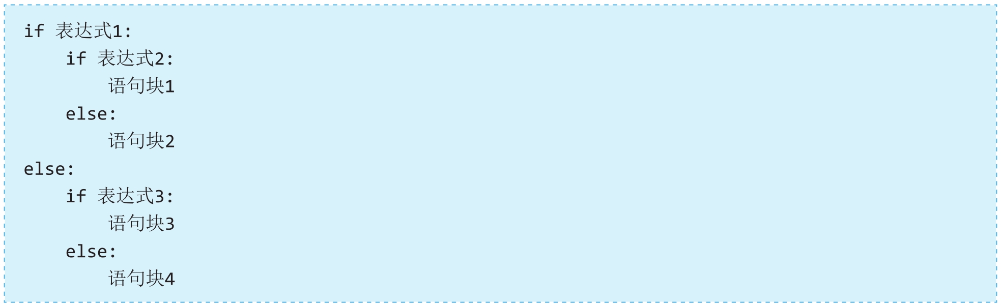 在其他语言(如C、C++、Java等)中,选择语句还包括switch语句,也可以实现多重选择。但是在Python 3.12以前的版本中没有switch语句,所以实现多重选择的功能时,只能使用if…elif…else语句或者if语句的嵌套。