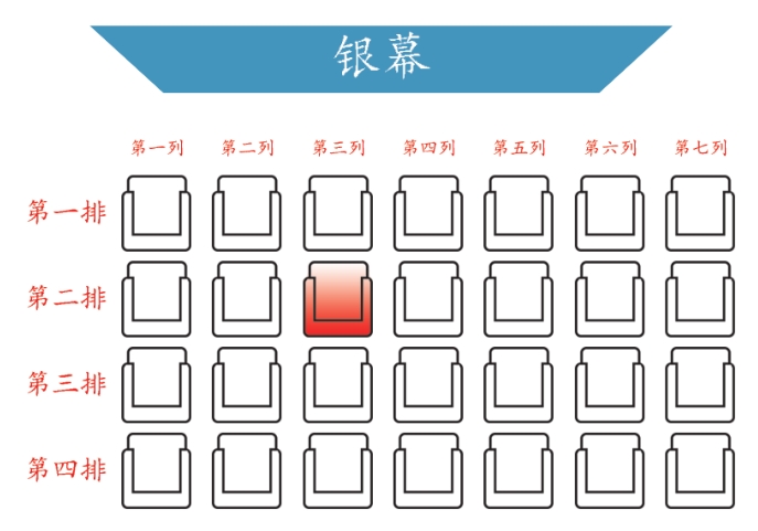 在Python中,允许在一个循环体中嵌入另一个循环,这称为循环嵌套。例如,在电影院找座位号,需要知道第几排第几列才能准确找到自己的座位号,假如寻找如图3.21所示第二排第三列座位,首先寻找第二排,然后在第二排再寻找第三列,这个寻找座位的过程就类似循环嵌套。
