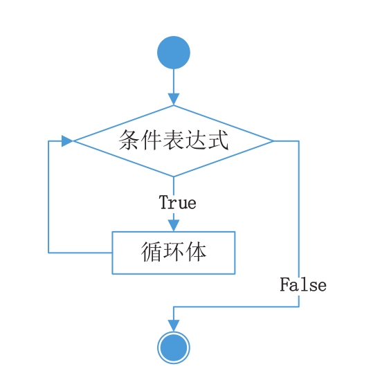 当条件表达式的返回值为真时,则执行循环体中的语句,执行完毕后,重新判断条件表达式的返回值,直到表达式返回的结果为假时,退出循环。while循环语句的执行流程如图3.16所示。