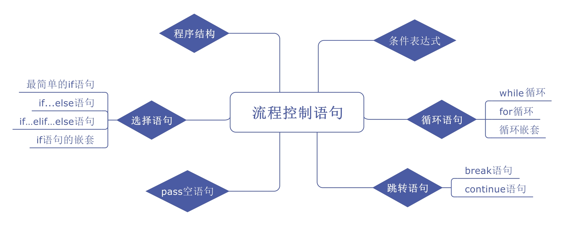 本章详细介绍了选择语句、循环语句、break语句、continue跳转语句及pass空语句的概念及用法。在程序中,语句是程序完成一次操作的基本单位,而流程控制语句是用于控制语句的执行顺序的。在讲解流程控制语句时,通过实例演示了每种语句的用法。在学习本章内容时,读者要重点掌握if语句、while语句和for语句的用法,这几种语句在程序开发中会经常用到。希望通过对本章的学习,读者能够熟练掌握Python中流程控制语句的使用,并能够应用到实际开发中。