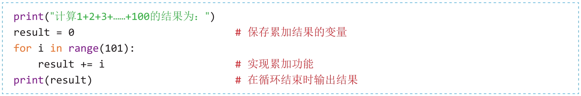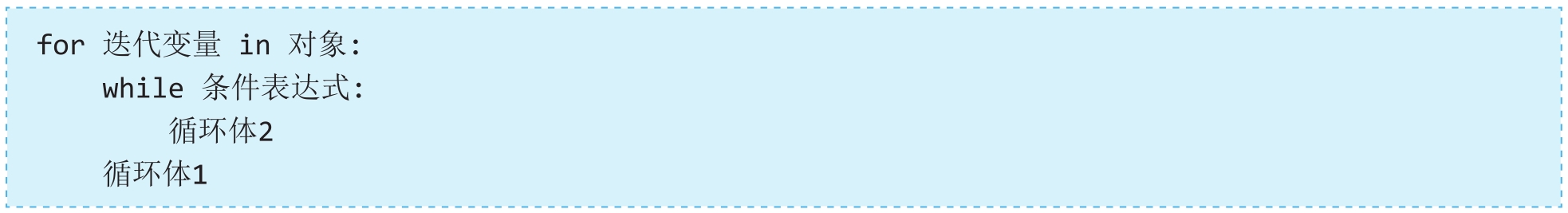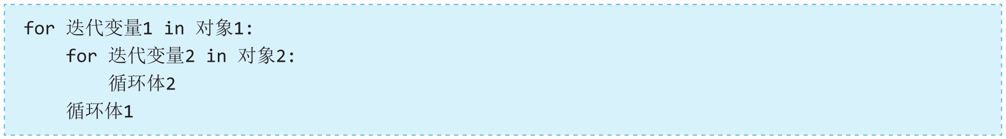 for循环语句还可以用于迭代(遍历)列表、元组、集合和字典等,具体的方法将在第4章进行介绍。