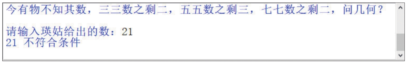 下面通过一个具体的实例来解决黄蓉给瑛姑所出难题中的第一个要素:判断一个数,除以三余二,除以五余三,除以七余二。
