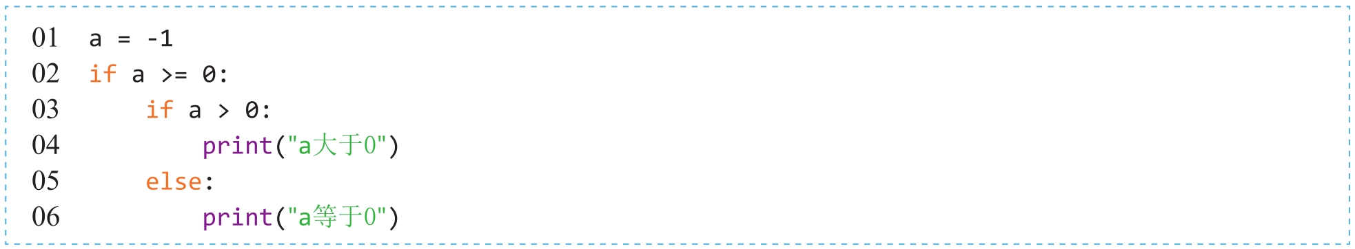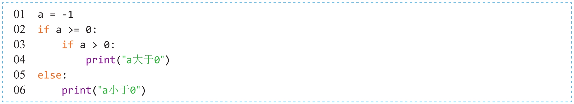 将输出提示信息“a小于0”。此时,else语句和第2行的if语句配套使用。
