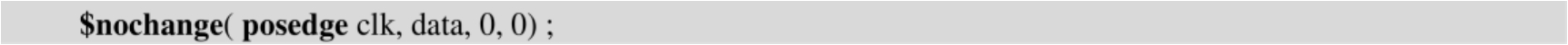 如果在一个控制信号(参考事件)指定的电平期间发生了一个数据事件,则$nochange时序检查报告一个时序错误。参考事件可以使用posedge或negedge关键字说明,但不能使用边沿控制的标识符。