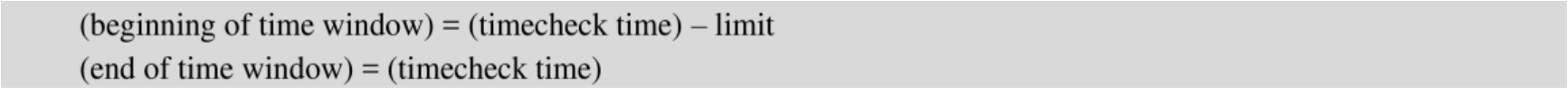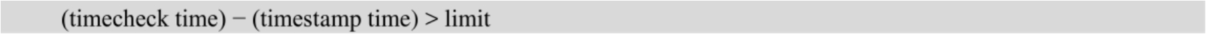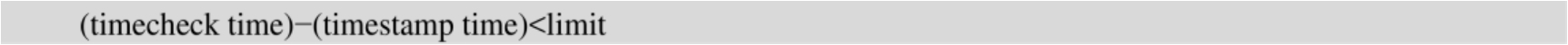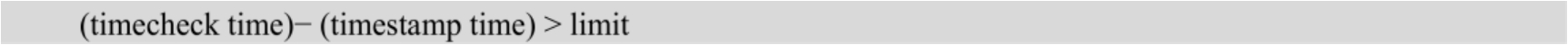 其中,reference_event为时间戳事件;data_event为时间检查事件;limit为非负常数表达式;notifier(可选)为Reg。