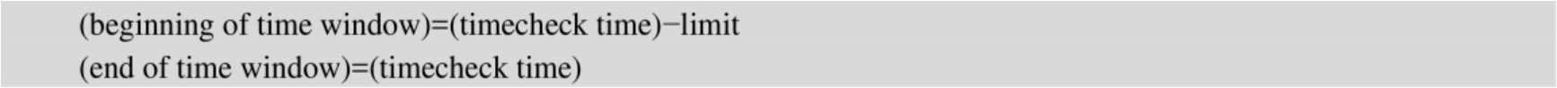 当去除限制值和恢复限制值均为正数,并且数据事件首先发生时,时间窗口的起点和终点由下式确定: