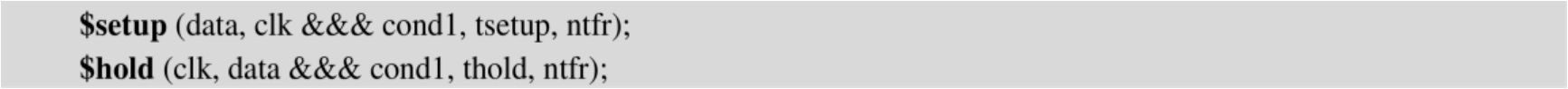 【例1.47】 条件时序检查Verilog HDL描述的例子。