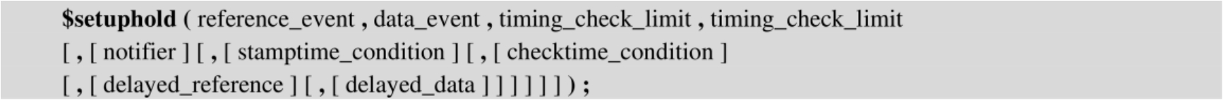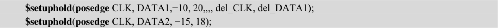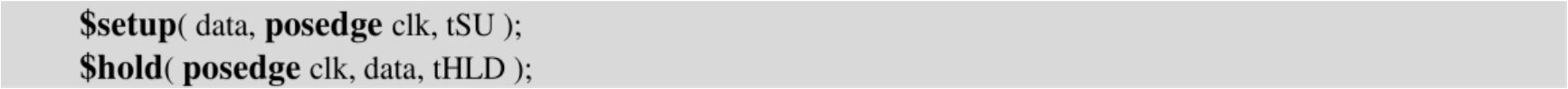 $setuphold时序检查将$setup和$hold时序检查功能组合为一个时序检查。