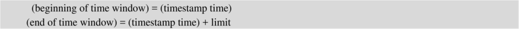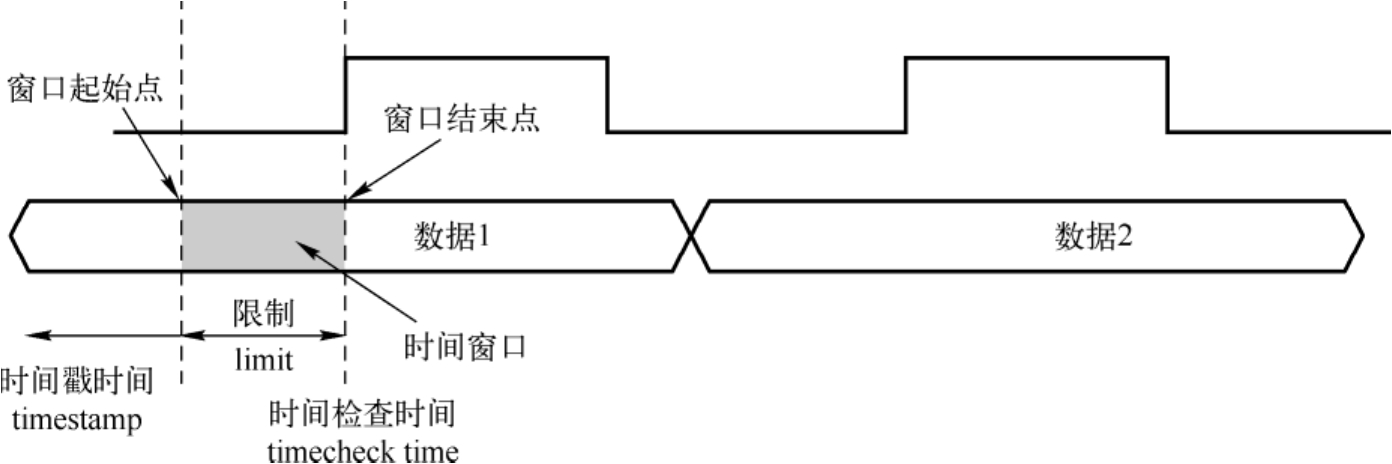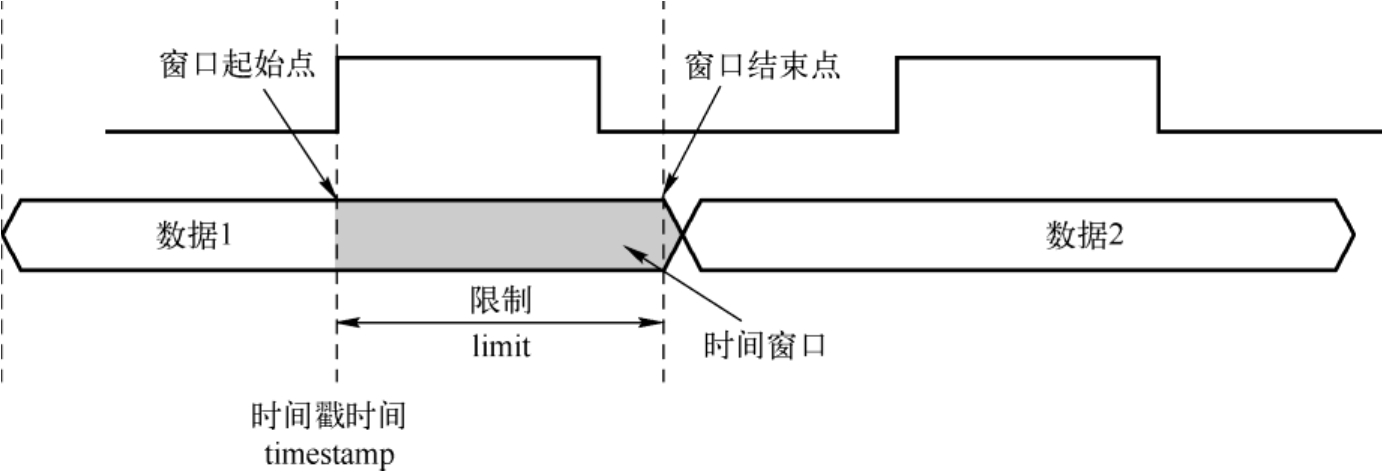 此外,数据(时间戳)事件通常是一个数据信号,而参考事件(时间检查事件)通常是一个时钟信号。时间窗口的终点由下式确定: