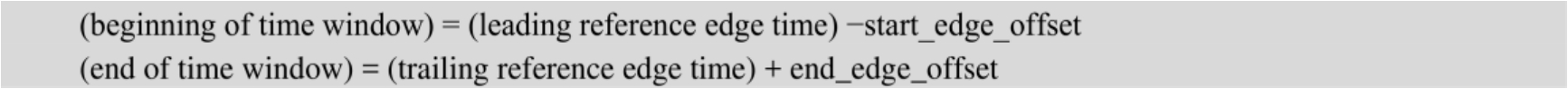 此外,数据事件(时间检查事件)通常是一个数据信号,而参考事件(时间戳事件)通常是一个时钟信号。时间窗口的起点和终点由下式确定: