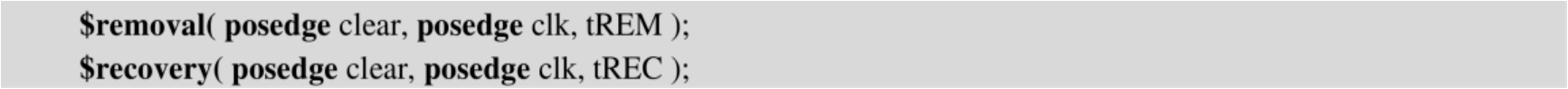 $recrem时序检查将$removal和$recovery时序检查的功能组合为一个时序检查,因此,下面的调用: