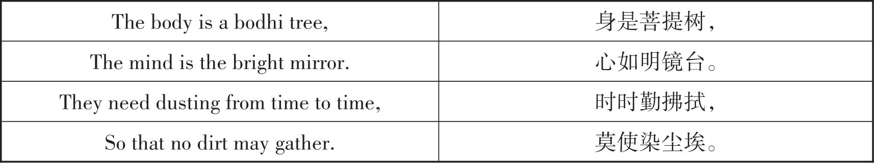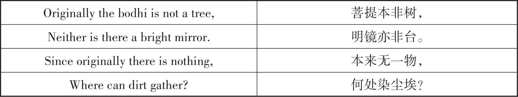 Hui Neng, who was illiterate, heard his fellow monks talking about Shen Xiu’s poem, and composed another one to comment on it. He asked someone to write his verse on the wall: