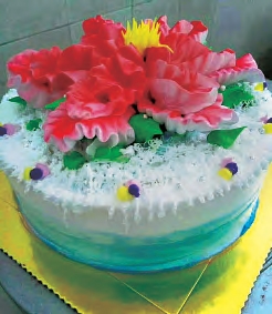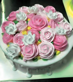 装饰是蛋糕裱花的一个重要环节,蛋糕的精致程度反映了裱花师功底的深厚。蛋糕上的花朵、生肖、卡通动物、巧克力装饰、水果切法、杏仁膏的捏塑、吊线、花边、写字等都能表现一个师傅的装饰技艺。比如花朵要符合花的开放规律:花心部分、绽放部分、怒放部分都要充分体现出来。每个花瓣要清晰、飘逸,还要把花朵与奶油的软、硬质结合起来,才能做得更好。