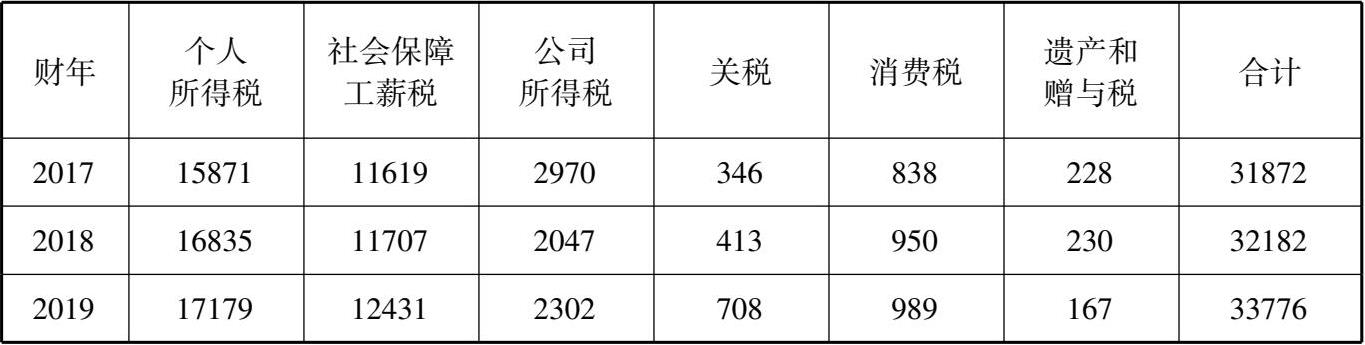 联邦税收收入主体并未“伤筋动骨”。根据美国财政部和国会预算办公室发布的数据,2017—2019财年美国联邦税收收入情况见表2-1。从数据可以看出,此次税改并未伤及个人所得税这个占据美国联邦税收收入半壁江山的根本基础,个人所得税和社会保障(工薪)税甚至还保持了稳步小幅增长;公司所得税2018财年降幅较大,与税改法案实施前相比,在税收总收入的占比显著下降,也表明大企业是税改的真正受益者。美国税收与经济政策研究所数据显示,2018年美国最大的60家企业税前收入为790亿美元,缴纳的联邦公司所得税却为零。
