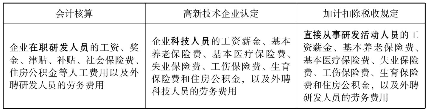 (2)高新技术企业认定口径的研发费用,其主要目的是判断企业研发投入强度、科技实力是否达到高新技术企业标准,因此对人员费用、其他费用等方面有一定的限制。