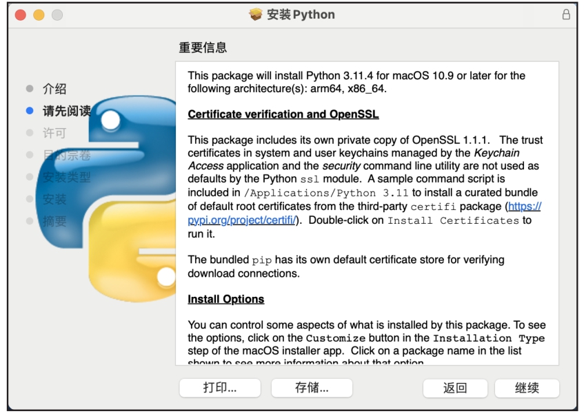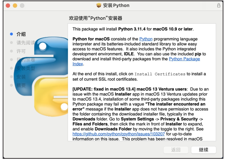在Mac系统中安装比较简单,打开安装包,然后单击 继续 按钮,直到安装完成即可。