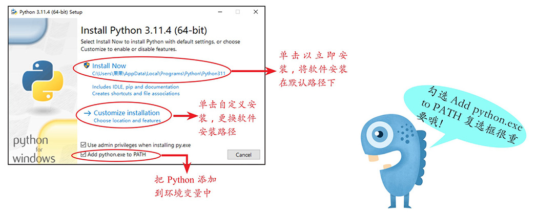 需要注意的是,一定要勾选Add python.exe to PATH复选框,把