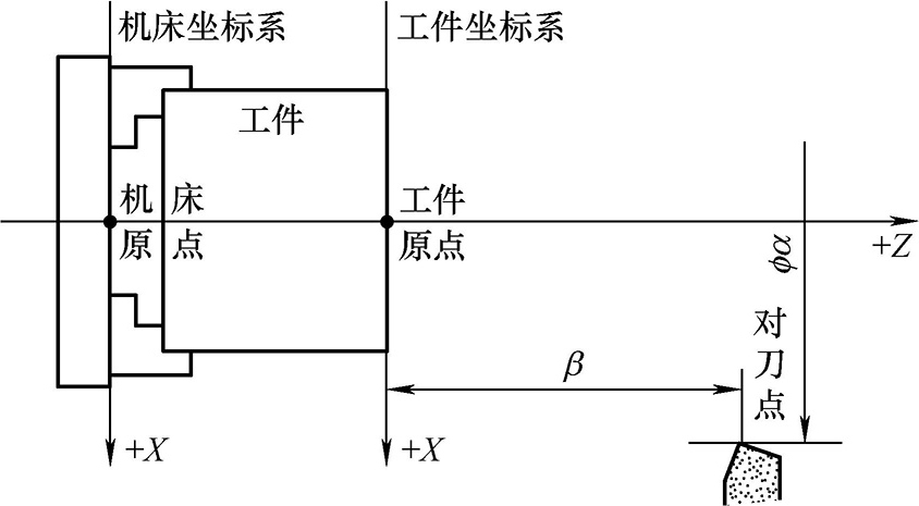 (1)机床坐标系 在数控机床上,机床的动作是由数控装置来控制的,为了确定机床上的成形运动和辅助运动,必须先确定机床上运动的方向和移动的距离,这就需要在机床上建立一个坐标系,这个坐标系称为机床坐标系,也叫标准坐标系。机床坐标系是机床固有的坐标系,是用来确定工件坐标系的基本坐标系,是确定刀具(刀架)或工件(工作台)位置的参考系,并建立在机床原点上。