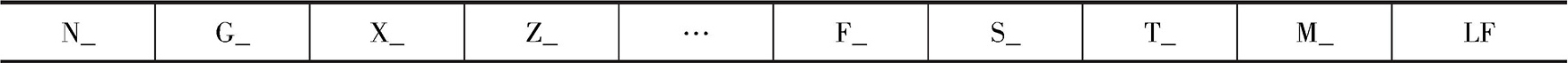 (2)程序主体(程序内容) 程序主体是整个程序的核心,由若干程序段组成,表示数控机床要完成的全部动作。每个程序段由若干个字组成,字即指令字,也称为功能字,由地址符和数字组成,是组成数控程序的最基本单元。不同的地址符及其后续数字组成了不同的指令字及含义。常用程序段号表示程序段的顺序,程序段号也叫程序段序号或顺序号,位于程序段之首,它的地址符是N,后续数字一般2~4位。可以在程序段前任意设置程序段号,也可以不写或不按顺序编号,或只在重要程序段前按顺序编号,以便检索。程序段号可以用在主程序、子程序和宏程序中。