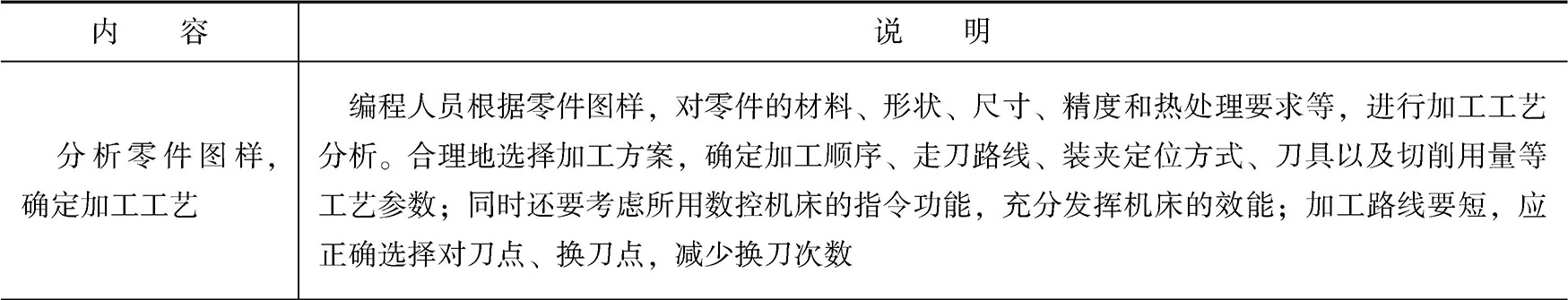 数控编程是指从零件图到获得数控加工程序的全部工作过程。数控编程的步骤一般如图1-43所示,其内容和说明见表1-7。