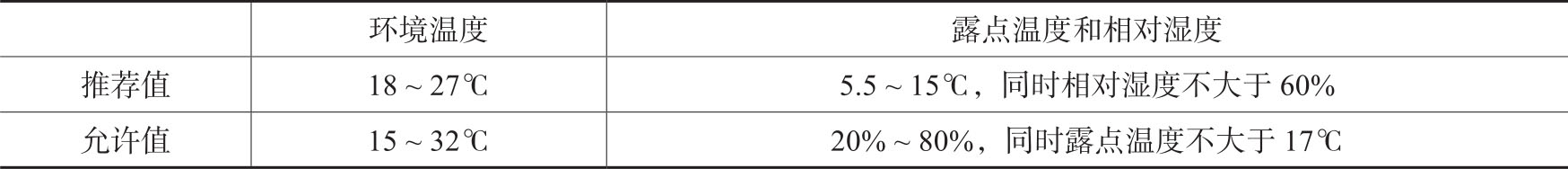 根据电子信息设备技术的发展、国外相关标准的变化以及节能要求,数据中心主机房的温度等参数提出要求。主机房和辅助区内的温度、露点温度和相对湿度应满足电子信息设备的使用要求;无特殊要求时,应按照表1-5执行。