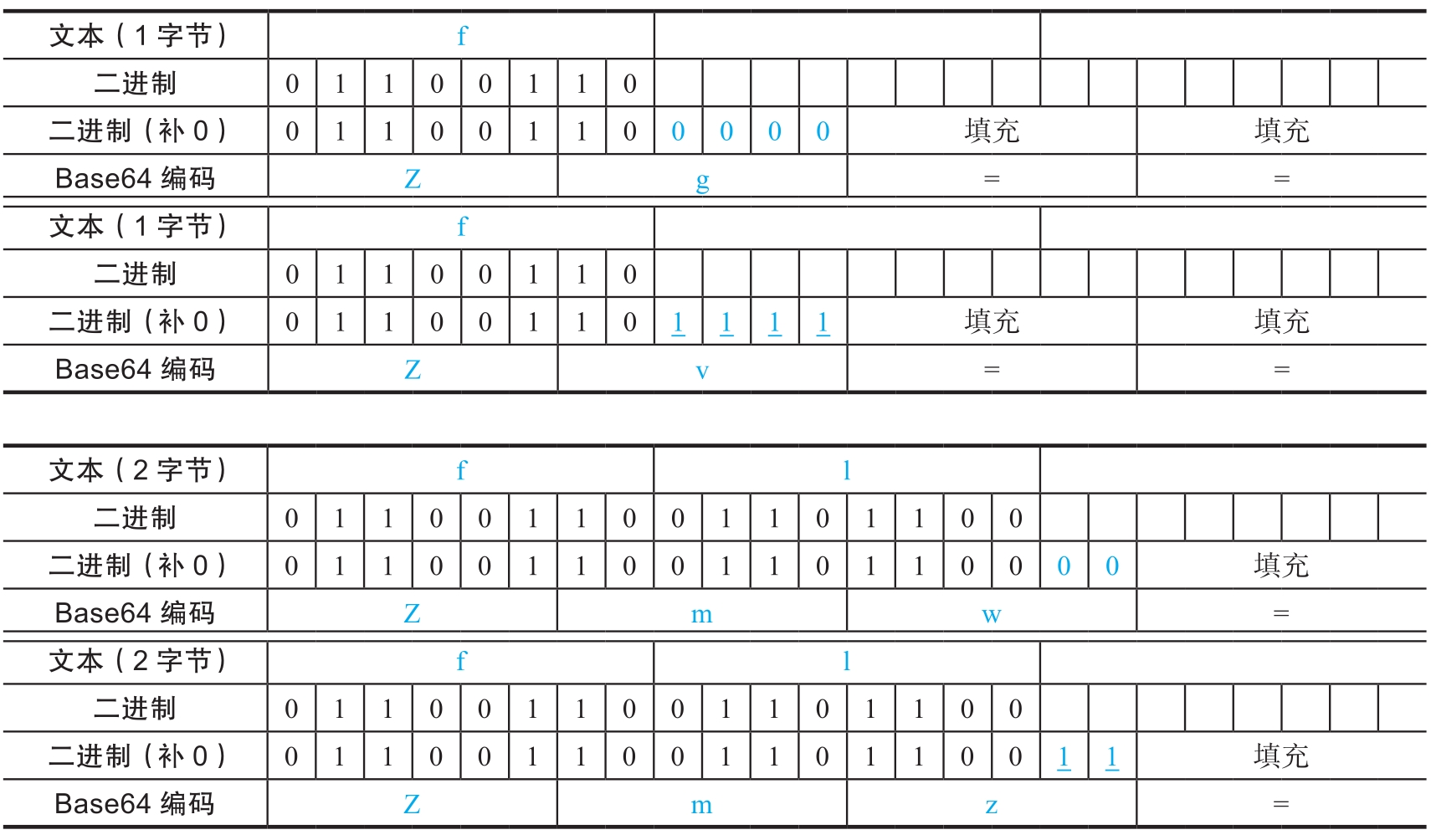 但是,在实际转换过程中,原始数据的长度不一定恰好能被3整除,按3字节为一组进行分组后,最后一组会出现只有1字节或2字节的情况。这种情况下,一般默认填充0,使最后一组的长度也达到3字节。下面给出了一个例子。