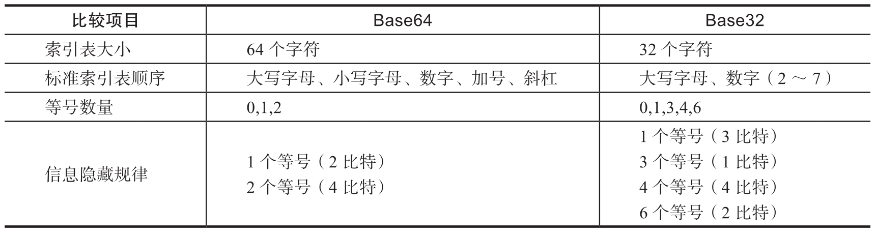 表1.1.3 Base64编码和Base32编码的比较