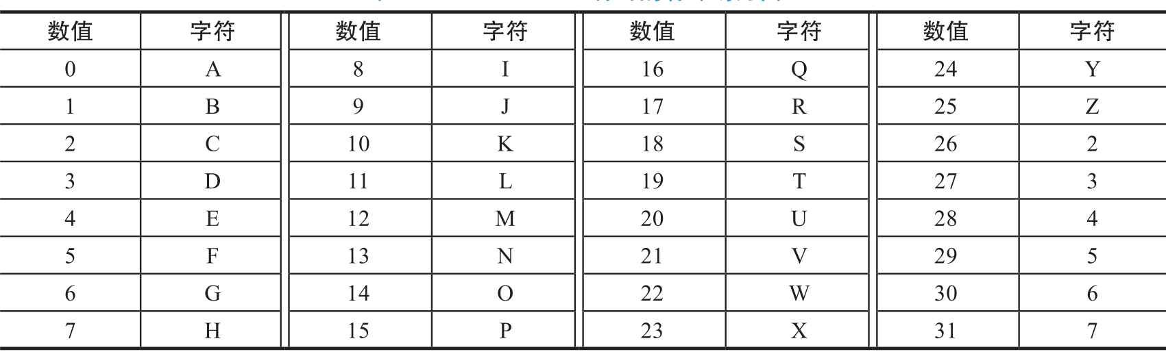 表1.1.2 Base32编码的标准索引表