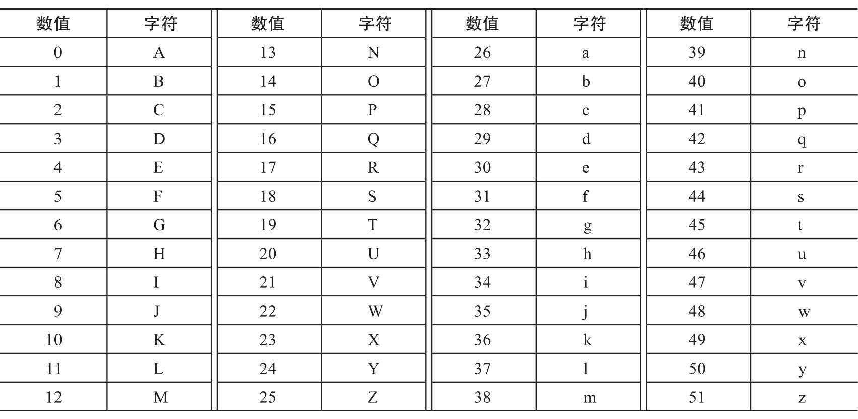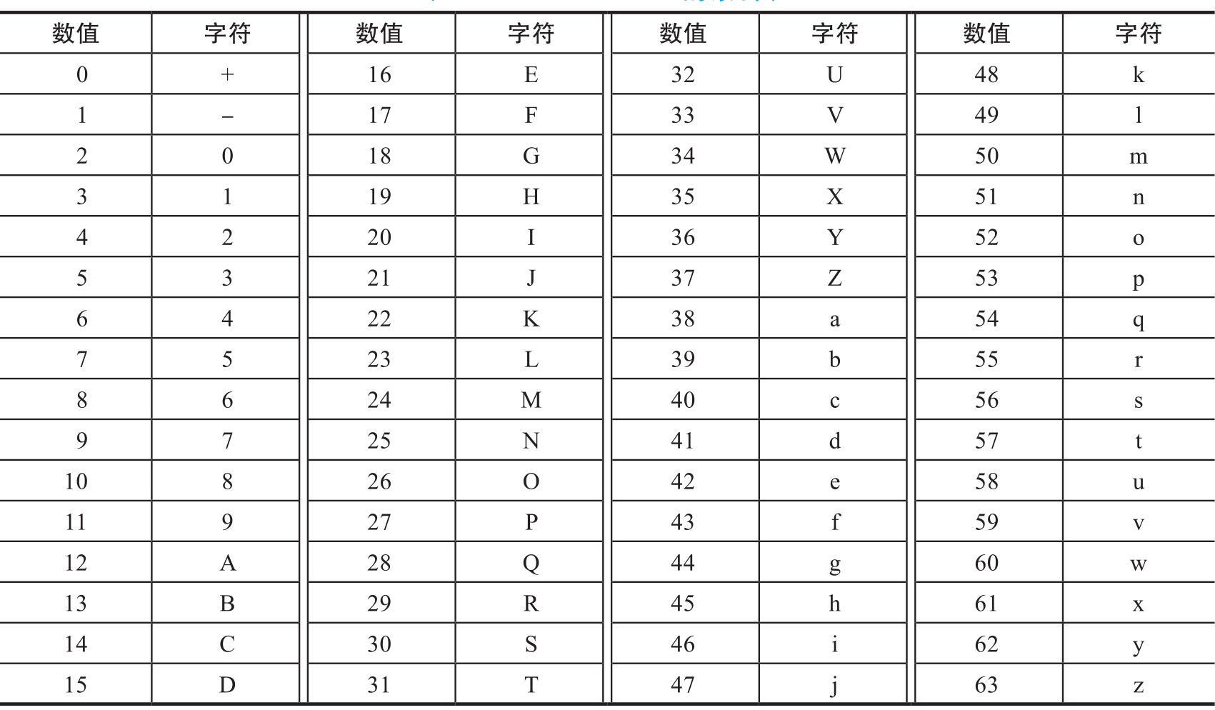 表1.1.1 Base64编码的标准索引表
