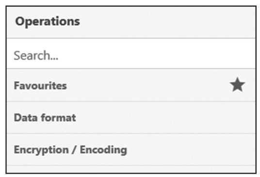 因为CyberChef中集成的功能众多,因此可以在Operations的Search窗口中(如图1.1.7所示)查找。输入对应编码(或加密算法)的名称后,在Operations下方会出现对应的功能模块,其中“To”开头的模块表示编码,“From”开头的模块表示解码。