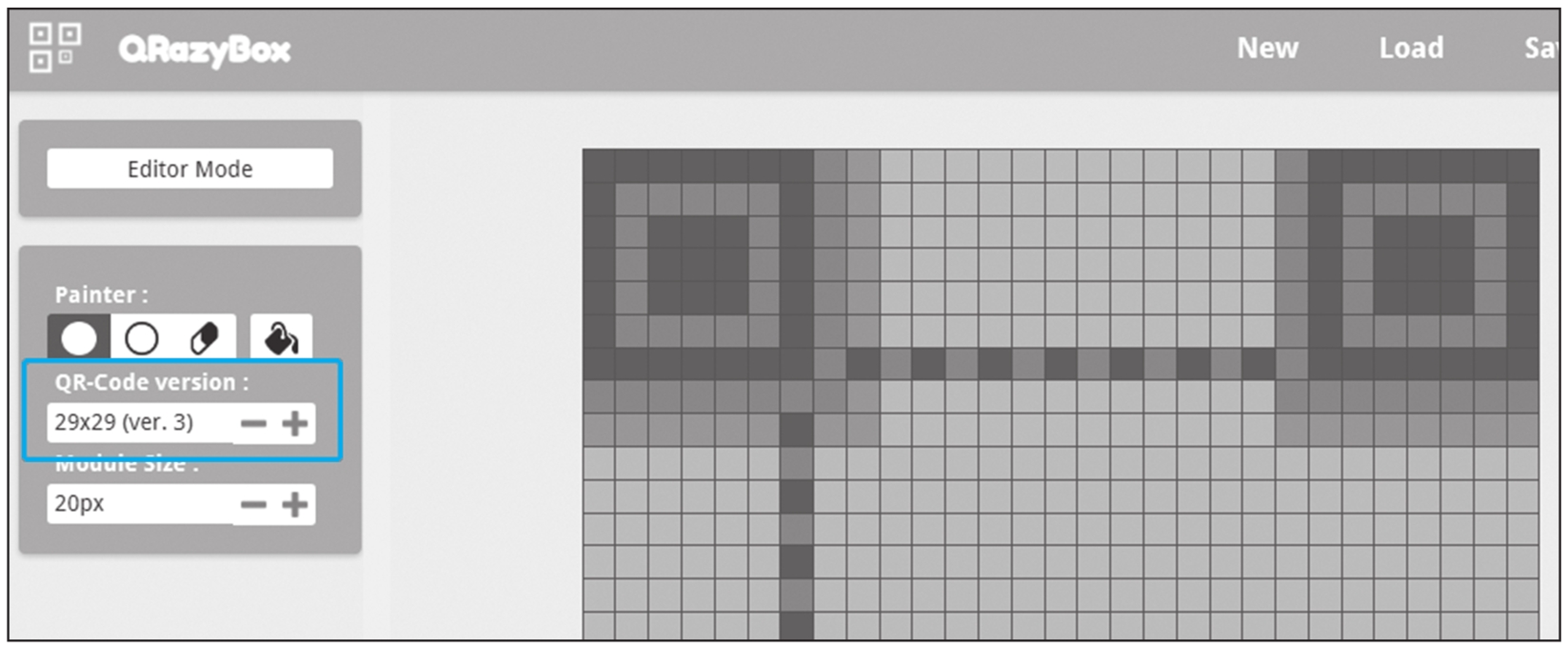 【解题思路】 打开图像,发现是右半张QR码,需要修复。推荐使用工具QRazyBox(网址为https://github.com/merricx/qrazybox/),该工具可以修复破损比较严重二维码。具体方法如下:首先查看PNG图片,根据位置探测图形的大小,得到对应的二维码规格是29×29。在QRazyBox选择对应的版本,如图2.5.8所示。