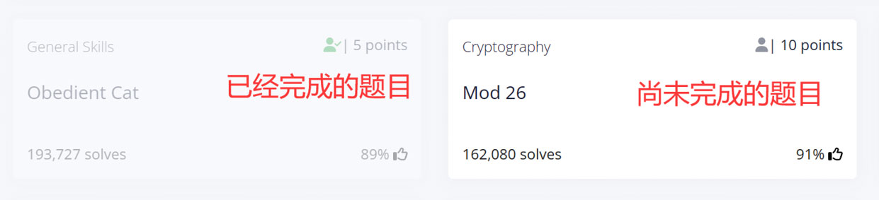 对于每一道题目,PicoCTF都给出了十分详细的信息。下面以一道入门题目“Obedient Cat”为例介绍PicoCTF提供信息的方式。在题目列表中,该题的信息简介如图1-7所示。