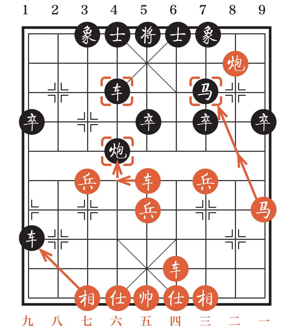 路线:棋子行走路线通畅,车前无阻碍,马无绊脚子,炮前有炮架。