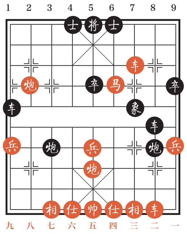先看路线:红方双马受黑车的牵制,无法移动,六路车需守护六路马因而不能离开六路;而黑方双车路线通畅。