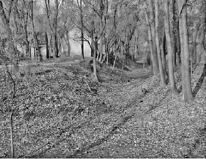 寨海子是挖土建寨墙留下的土沟,紧邻寨墙外侧,同时也有护城河的功能,在捻军、土匪进攻寨子的时候能够起到一定的防御作用。图1-1是村中现在寨海子的遗迹,由于近年来建房等原因,寨海子逐渐被填用作宅基地,因此现在看到的寨海子比原来的寨海子要窄。按照老人描述的城墙长度和规模——2米宽、10米高、6.6里长,整个城墙的用土土方量至少达到3万方,再加上夯土筑墙,需要投入的人力长达几万个工作日。为了完成土寨修建,居住在爪营寨内和其他周边村庄的人都被动员来参与打寨,根据村内《符氏宗谱》记载,参与打寨的多达上万人。只要是参与打寨的人,在捻军侵扰的时候就可以进入寨内躲避。至此,爪营形成了一个由寨主领头的社会单元,既具有以寨墙为标志的物理边界和防御设施,也具有诸如集市贸易等经济功能。
