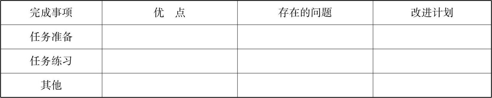 请小结完成本次任务过程中的优缺点,并提出改进计划,如实填写表 1-14。