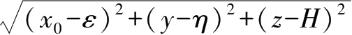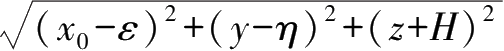 为基坑底面对应的坐标范围,即:-B /2≤ε≤B /2,- L /2 ≤ η ≤ L /2,ξ = H;变量z