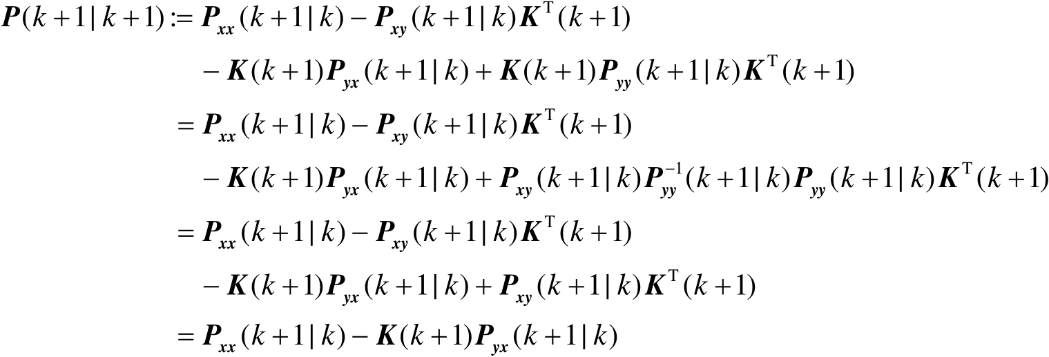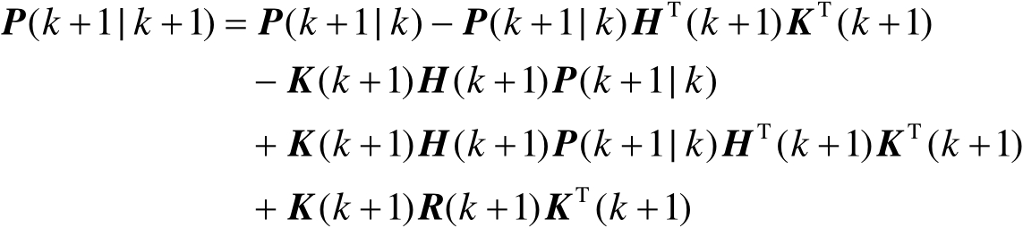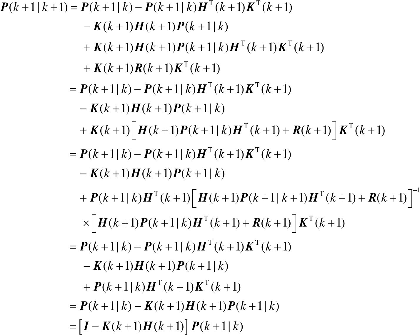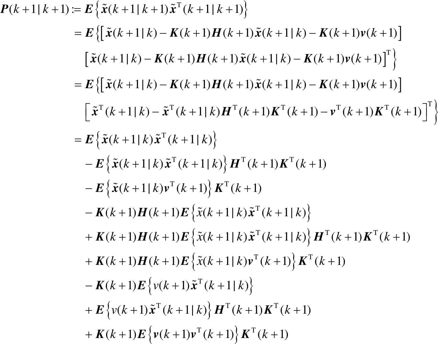 进一步,可以得到状态变量 x ( k +1) 估计误差协方差矩阵的简化形式: